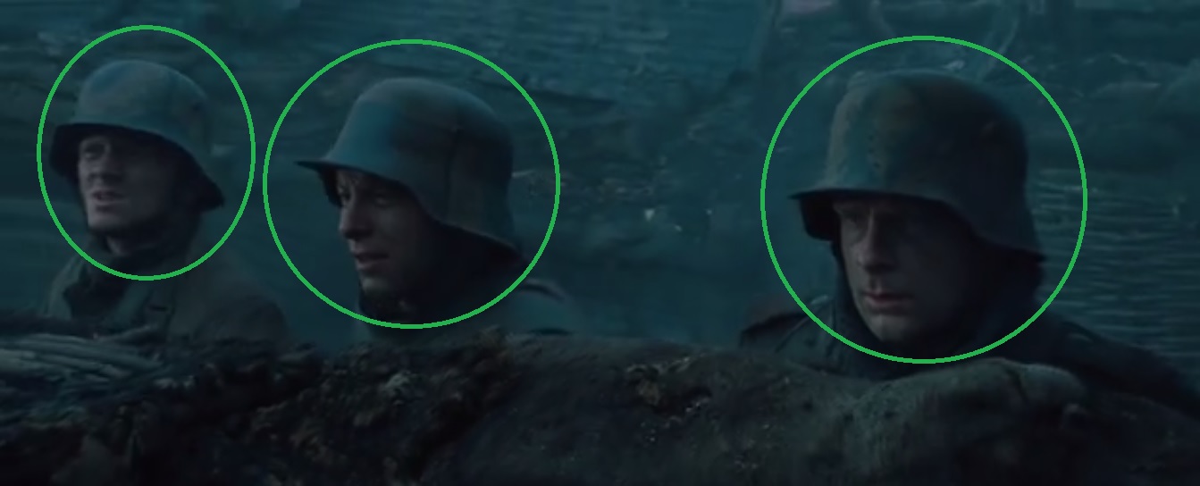- Making the protagonists, still suspicious, not want to take off their helmets yet. On the other hand, the object clearly serves to help the viewer distinguish between one army and the other, to English and German.
