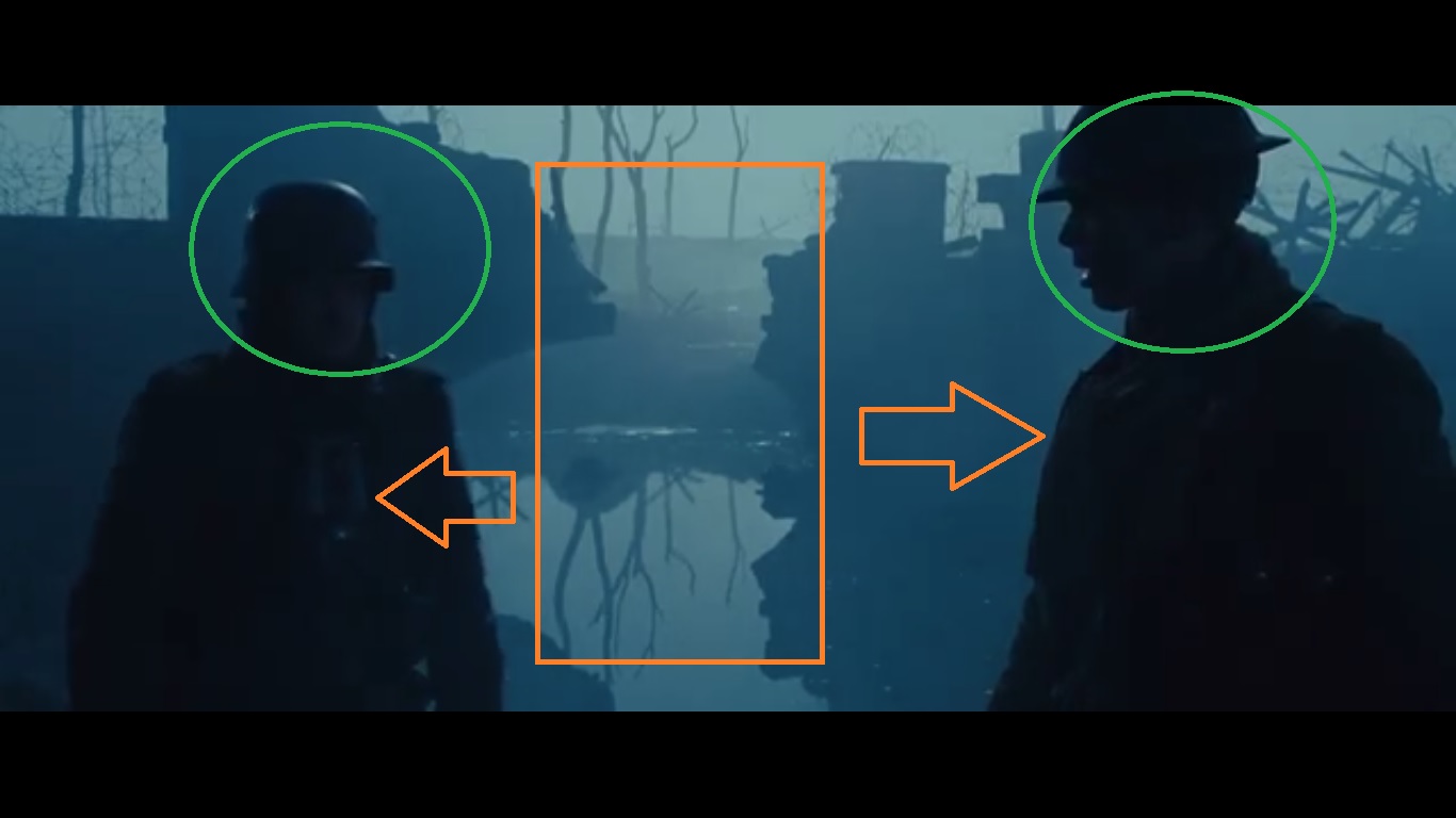 The idea that the protagonists remove their helmets to reflect the viewer that they are alike will be reinforced later with the jokes they will share comparing their situations in the trenches, their tastes for girls, or that both have common names throughout the world – world and not exclusive to the countries for which they fight.